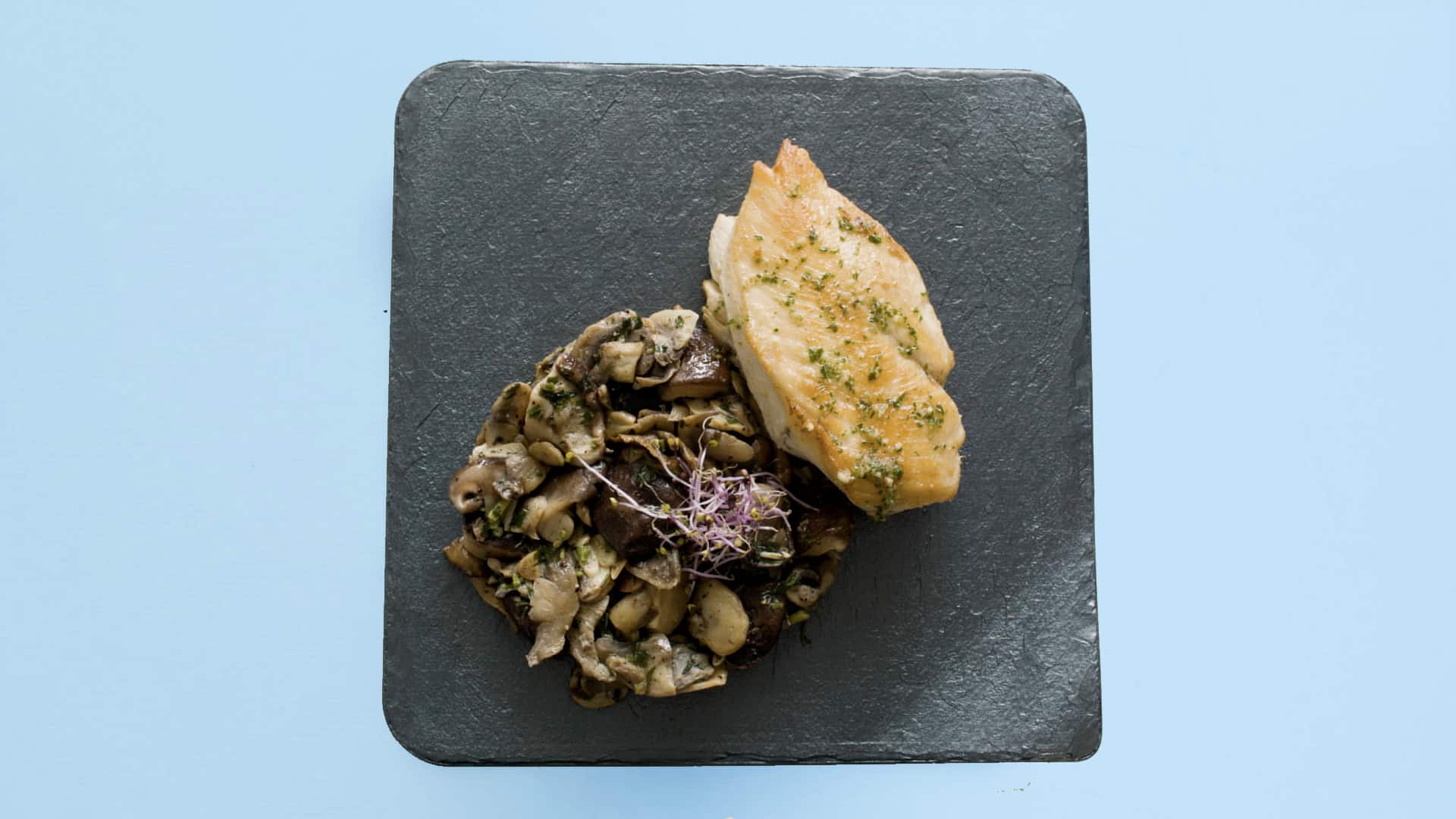 Aceite de Oliva Virgen Extra, Pechuga de Pollo, Ajo, Perejil, Pimienta Negra, Cóctel de Setas, Sal